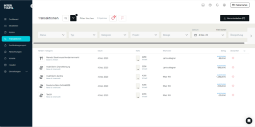 - Unternehmensgesteuerte Ausgaben: Anstatt dass Mitarbeiter ihre persönlichen Mittel für geschäftliche Ausgaben verwenden müssen, stellt "Intertours Pay" Unternehmenskreditkarten zur Verfügung. Diese Karten können für alle geschäftsbezogenen Ausgaben genutzt werden, was die Notwendigkeit von Vorauszahlungen durch die Mitarbeiter eliminiert.