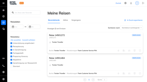 - Digital durch den Reisenden: Der Techniker kann seine Reise selbstständig und digital über das Intertours Travel-Tool buchen.