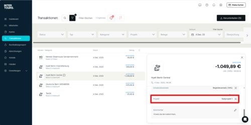 Nahtlose Verknüpfung von Transaktionen und Belegen: Sobald eine Transaktion mit einer Unternehmenskreditkarte getätigt wird, wird diese in der Plattform erfasst. Der Karteninhaber kann dann den dazugehörigen Beleg direkt in der Plattform hochladen und mit der Transaktion verknüpfen. Diese direkte Verbindung zwischen Ausgabe und Beleg schafft ein hohes Maß an Transparenz und erleichtert die nachfolgende Überprüfung und Buchhaltung.