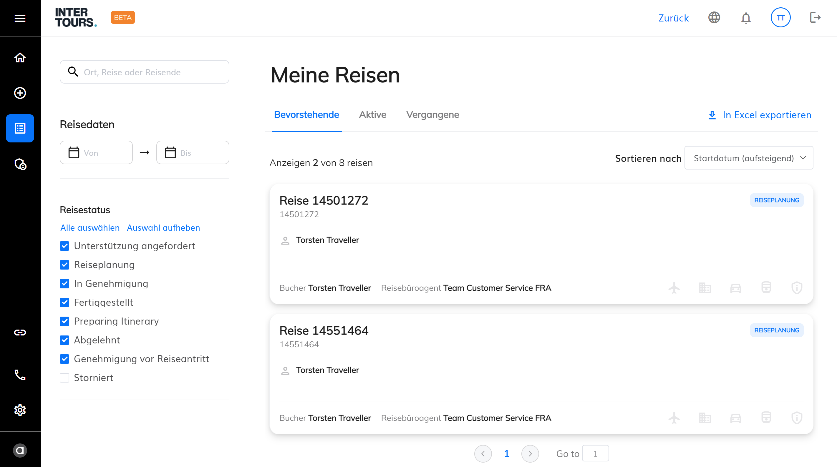 - Reisebuchung über Intertours Travel: Nun kommt "Intertours Travel" ins Spiel. Die Reisebuchung für den Servicetechniker kann auf verschiedene Arten erfolgen: