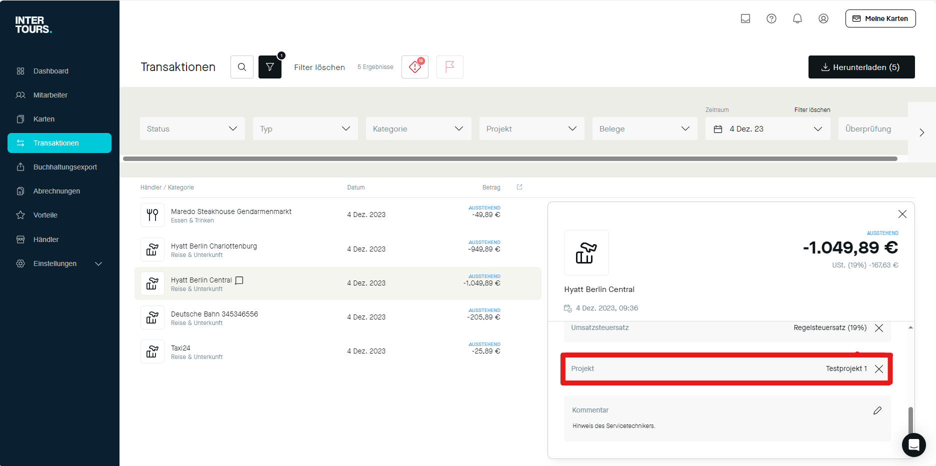 Der einzigartige Vorteil des "Intertours Pay"-Systems liegt in der Fähigkeit, getätigte Zahlungen als Transaktionen direkt in der Plattform mit den entsprechenden Belegen zu verknüpfen. Dieser Prozess bietet mehrere entscheidende Vorteile, die das Ausgabenmanagement erheblich vereinfachen und optimieren:
